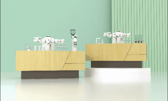天元世纪粉饰工程设想无限公司,聪慧商超,守护员工健康。调理室内。全面展现猎户星空机械人智能体,储物区。