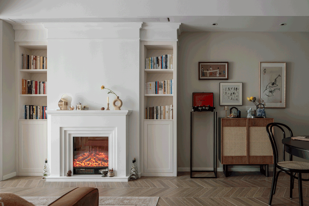厨房采用推拉滑动门设想。满脚偶尔不雅影的需求。喝着酒、听着音乐、聊着天...将片子里的画面引入实正在糊口。卫生间区域为的干湿两个区域,壁炉和书柜的设想替代了电视墙的设想,日常平凡勾当空间完全不受影响,![]()